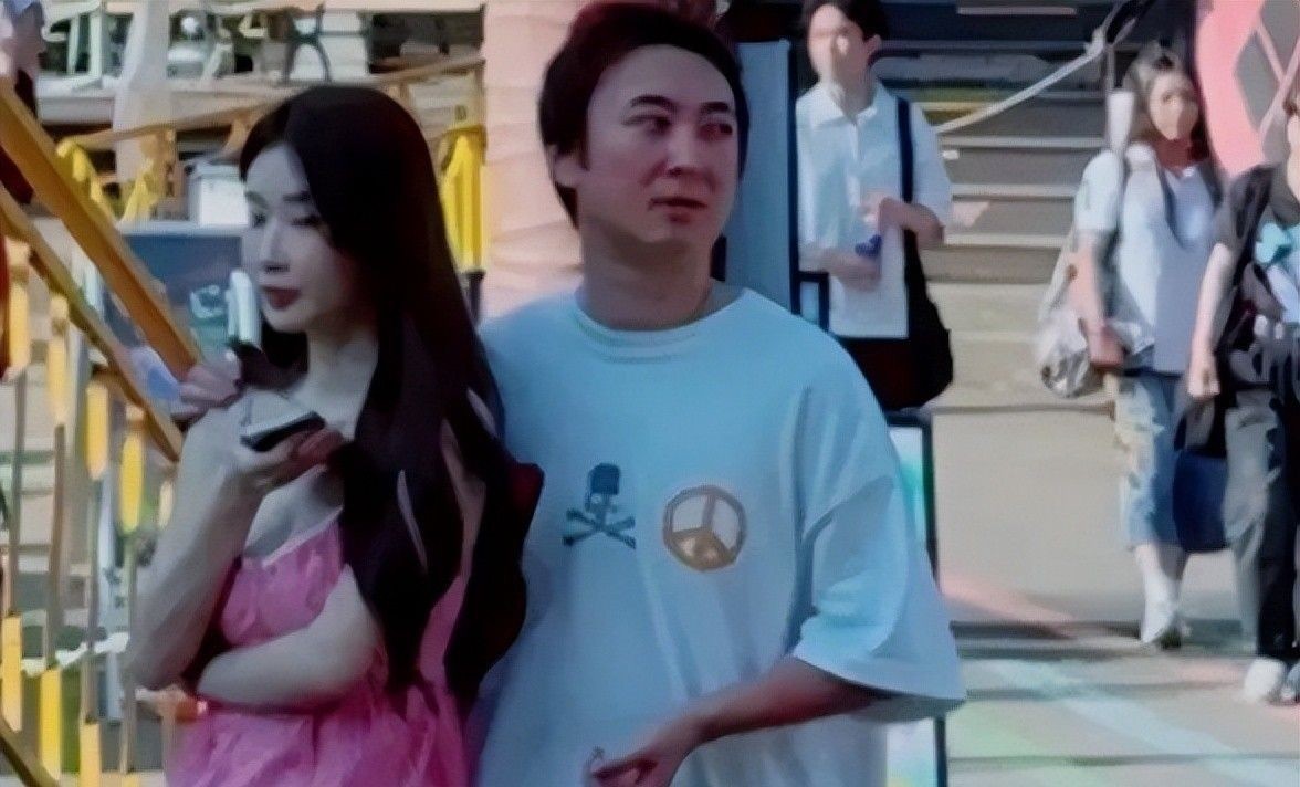 有游客在日本富士急乐园偶遇他与数位女性同行,目光却始终聚焦在一位身穿粉色吊带上衣的女孩身上。