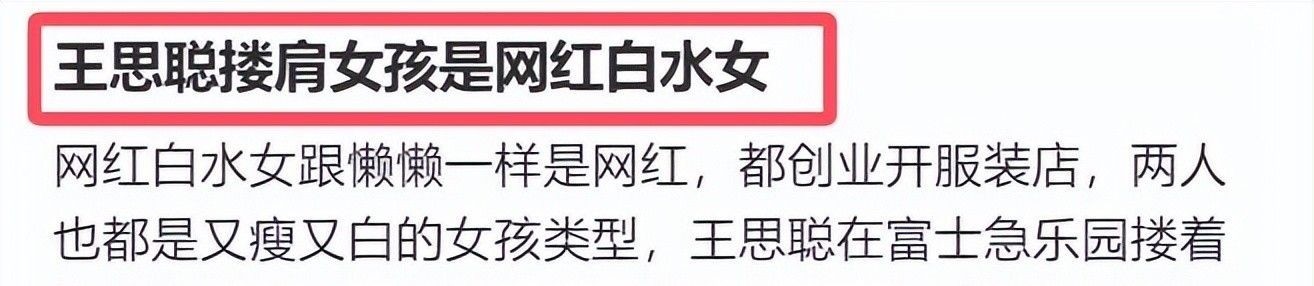 这位女孩名为白水女,是一位经营线上店铺的网络红人,外形兼具甜美与野性,正符合王思聪一贯偏好的类型。